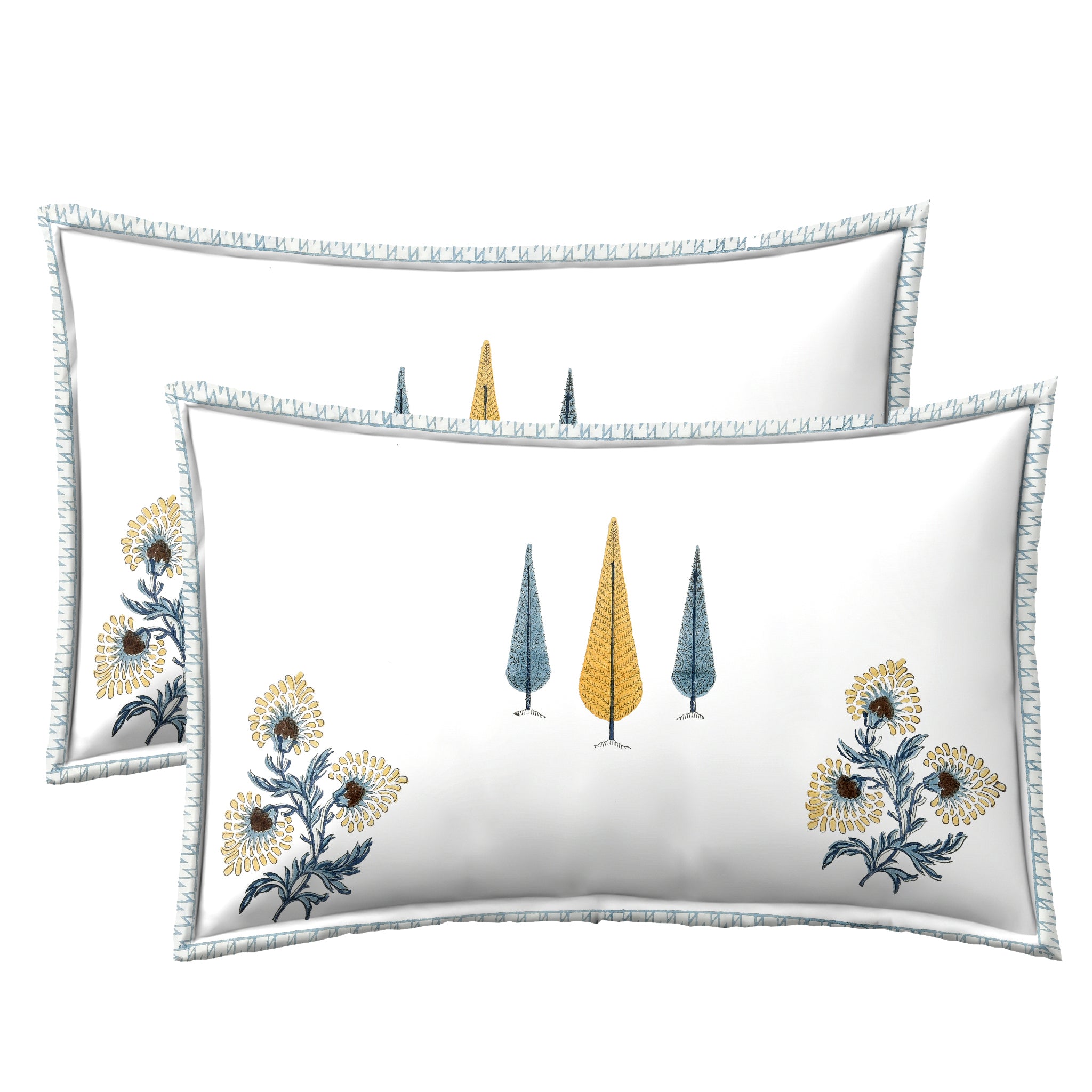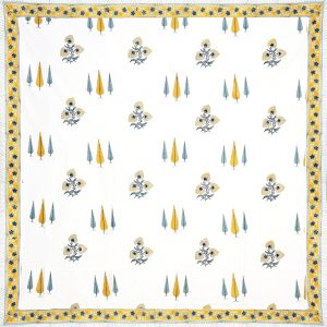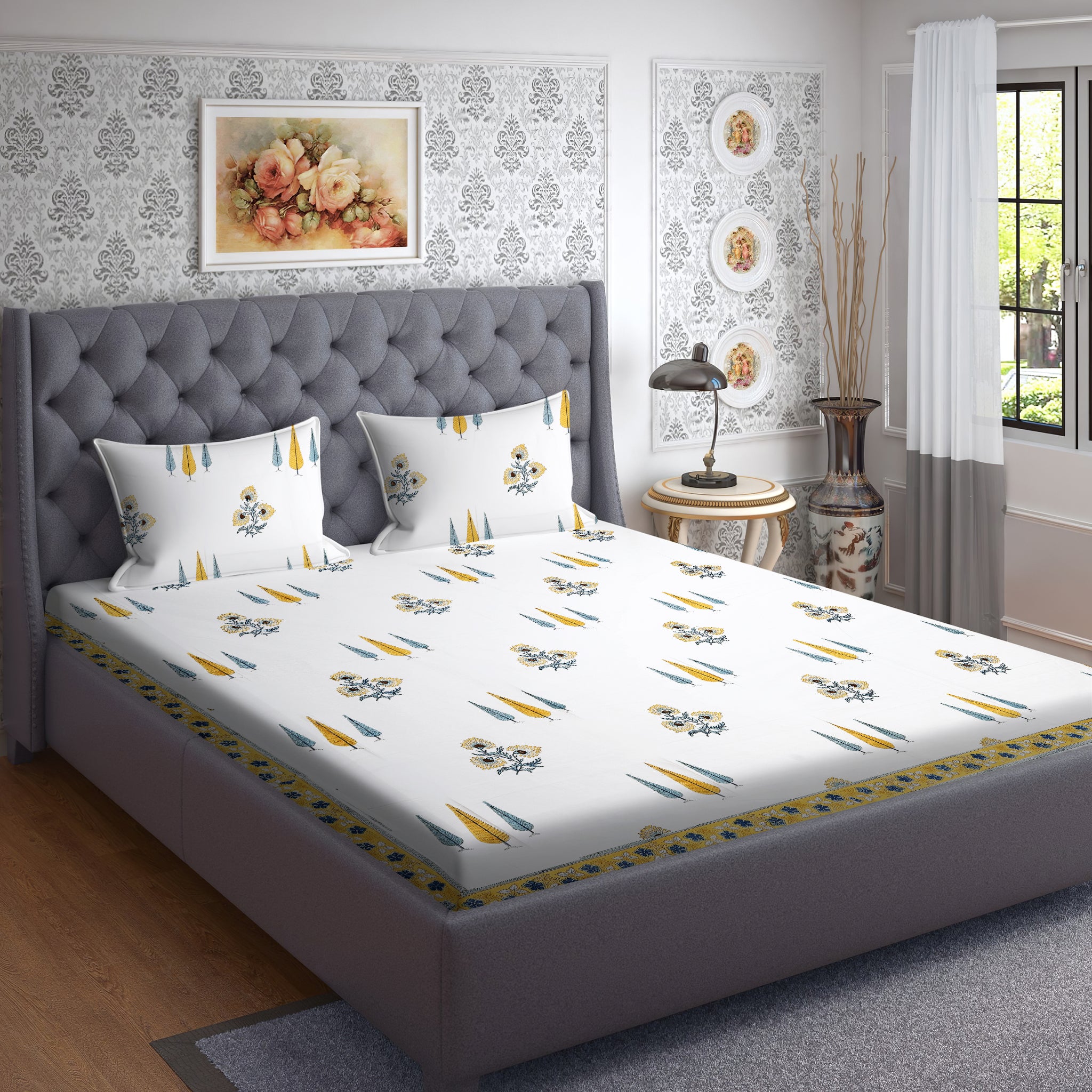 An enchanting blue & mustard yellow print with a lively border. Think festivals, think celebrations when you dress up your room with this bedsheet. High thread count renders the cotton fabric extremely premium & soft to touch.