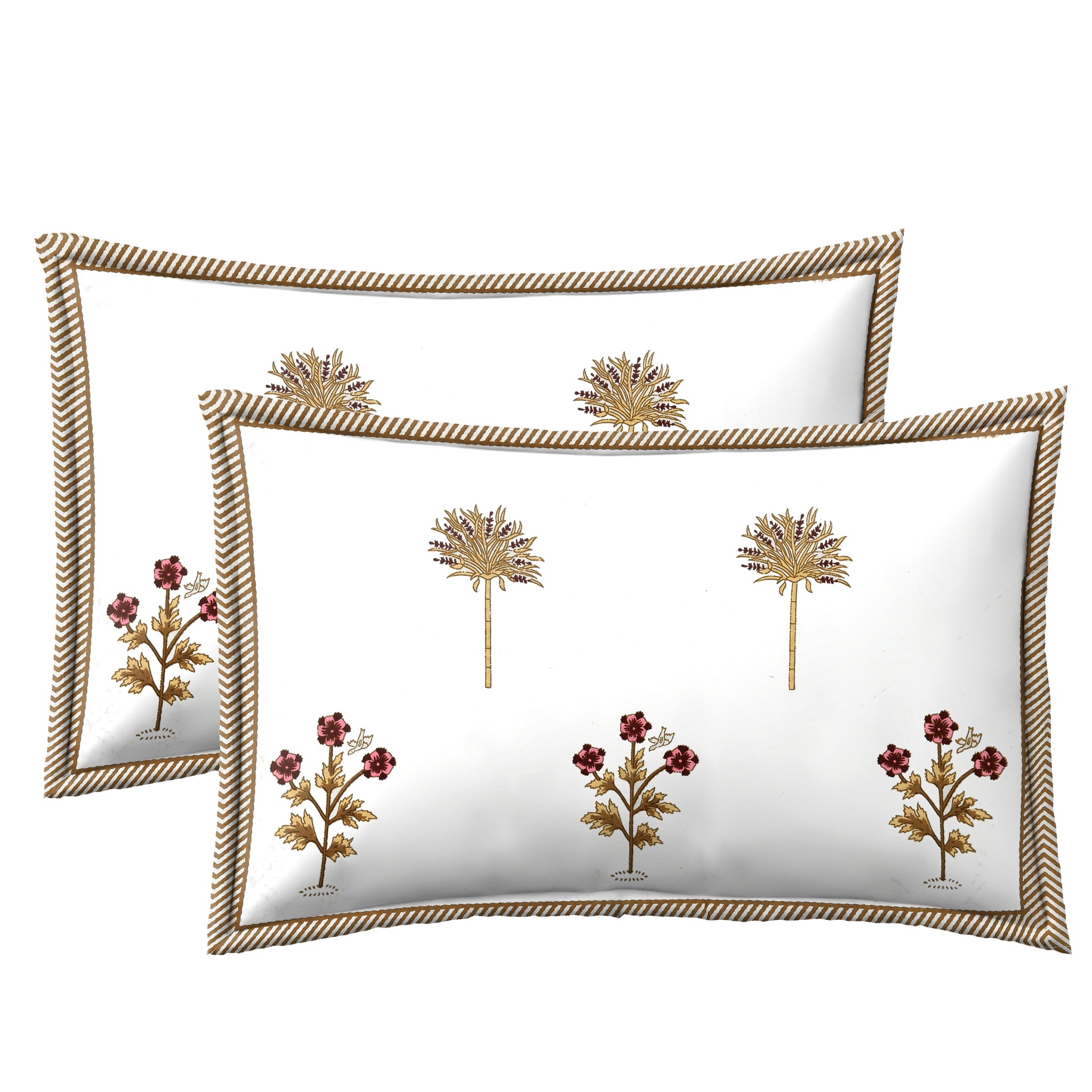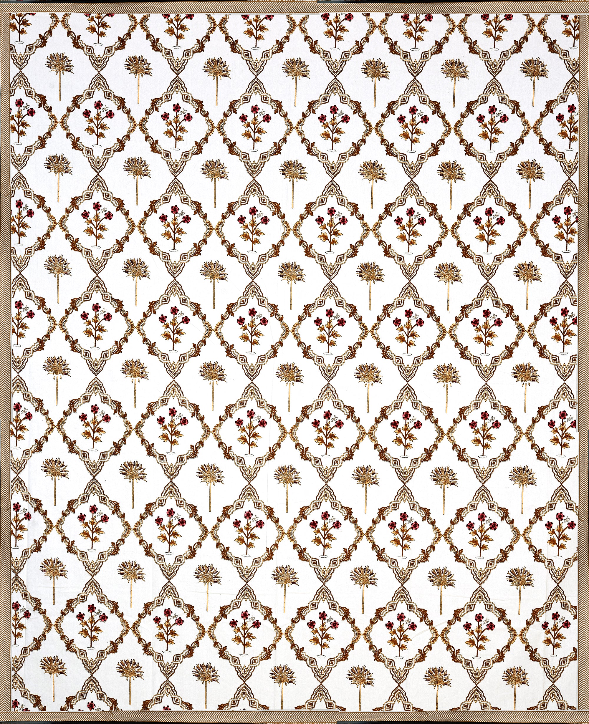 A jaal design marks this bedsheet with brown flowers & grey palm trees. Border is in brown colour. Variation available in green & grey colours